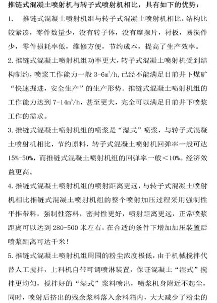 推链式混凝土喷射机与转子式喷射机相比,具有如下的优势